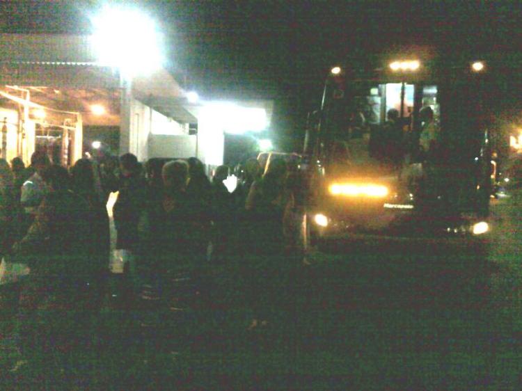 Mas desta vez era um grupo de pessoas aparentemente da mesma família, formando um coro de pelo menos dez vozes em protesto. “O banheiro está trancado!” “Não tem água!” “Não tem descanso de pé!” “Isso não é executivo!” “A gente pagou por ele (R$ 89,90), não vamos receber em troca um lixo!” “Viajei esses anos todos de executivo, sei como é!” “Vim em outro muito melhor, pelo mesmo preço!”