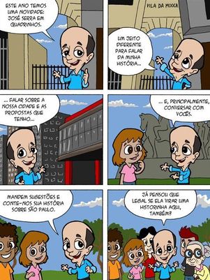 Na noite de ontem, a campanha de José Serra, candidato tucano à prefeitura de São Paulo, postou no Facebook uma HQ com o personagem “Serrinha” (copiando descaradamente o “Kassabinho” de 2008), que deve permear toda a campanha, contando a história dele (nasceu na Mooca, etc etc etc) e tal. A primeira tirinha foi esta: