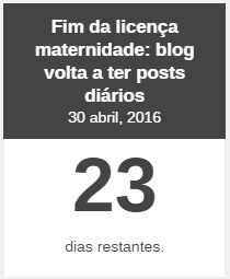 Ainda estou de licença-maternidade (tecnicamente, estou agora de férias), como o marco que pus no blog está mostrando, mas em breve voltaremos a ter posts diários por aqui 😉