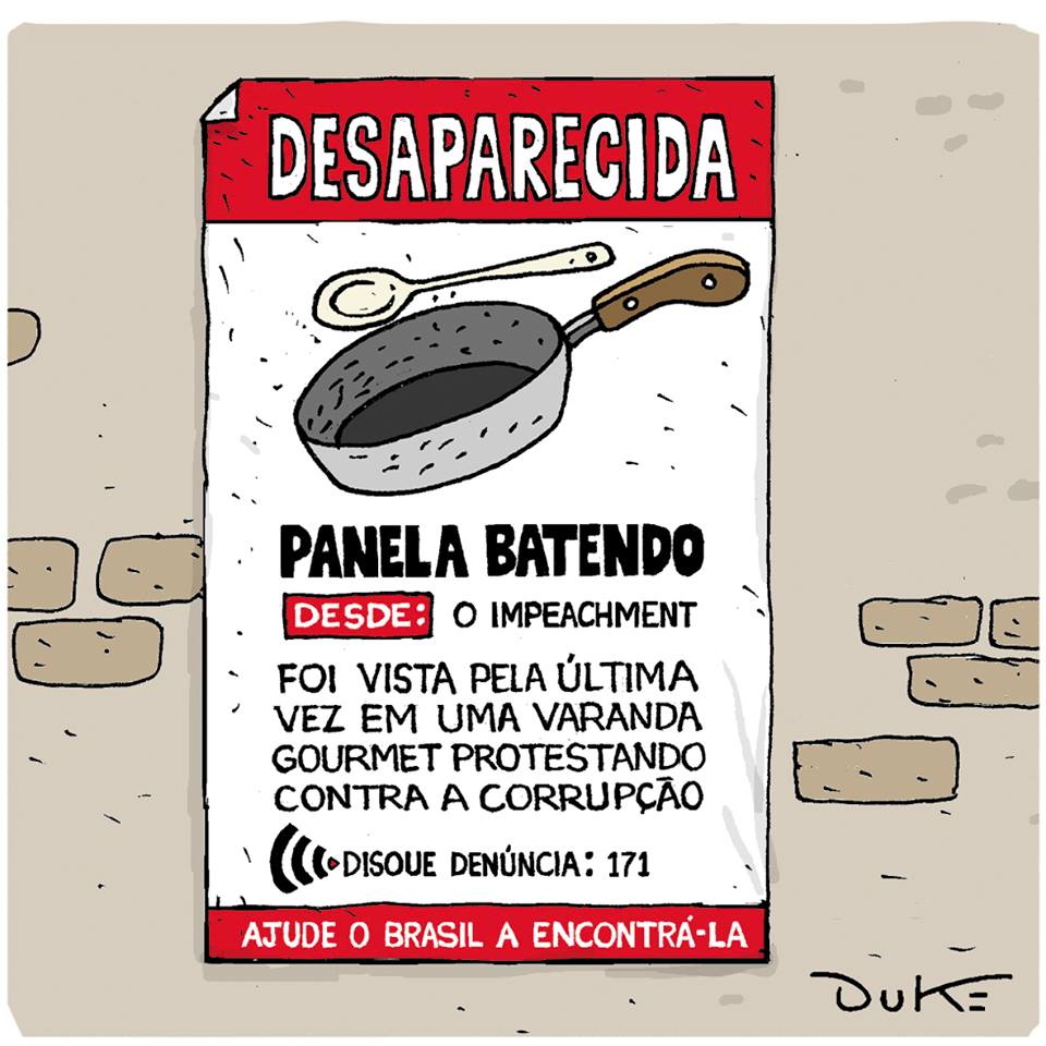 Evidências de corrupção generalizada entre a classe política brasileira – não só no PT mas muito além dele – continuam a surgir, agora envolvendo aqueles que antidemocraticamente tomaram o poder em nome do combate a ela. Mas desde o impeachment de Dilma, o movimento de protestos desapareceu. Por alguma razão, o pessoal do “Vem Pra Rua” não está mais nas ruas exigindo o impeachment de Temer, ou a remoção de Aécio, ou a prisão de Jucá. Porque será? Para onde eles foram?”