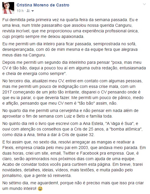 Dez dias sem postar no blog… Quem me acompanha por aqui sabe que, tirando os períodos de férias e a licença-maternidade, é muito difícil eu ficar tanto tempo sem atualizar esta página que tanto curto. Mas tive um motivo importante: meu 2017 (aqueeeele, pelo qual fiz tantos votos) começou com minha primeira demissão.