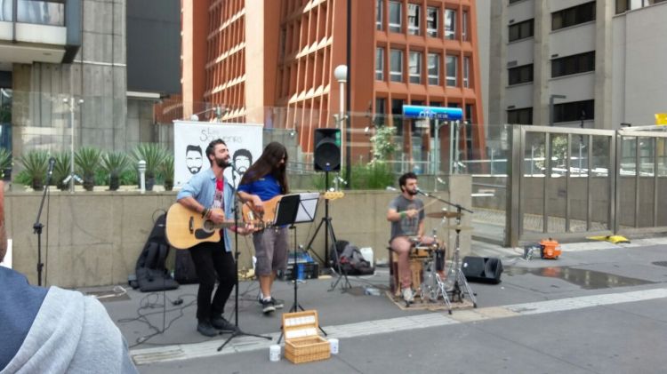 uma banda diferente a cada 10 passos; showzinhos de rock, blues, country, jazz, música nordestina, o escambau. Cover de Elvis Presley e um Freddy Krueger posando pra fotos. Centenas de pessoas andando de bike na ciclofaixa. Crianças pequenas andando de bike, skate e patinete. Artesãos vendendo todo tipo de arte. Uma manifestação contra a obesidade, outra manifestação contra o descuido no trânsito (neste caso, pessoas vestidas de focas e segurando a placa “FOCA NO TRÂNSITO!”), outra manifestação de evangélicos. Uma bateria de escola de samba universitária. Tudo grátis!