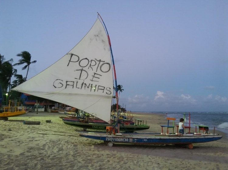Piscinas Naturais – É a praia mais perto da vila de Porto, que forma piscinas naturais e uma parte onde, reza a lenda, há vários peixinhos e é possível vê-los após uma breve caminhada a pé mar adentro. Infelizmente não vimos, porque a maré esteve alta nos dias em que estivemos na cidade. Mesmo assim, trata-se de uma praia muito bonita, cercada por enorme coqueiral, com mar de água verdiiiinha e com alguns pontos em que realmente parece uma piscina, ótimos para as crianças brincarem. O que achei chato nessa praia é que, na parte mais turística, somos interrompidos a cada 30 segundos por uma pessoa oferecendo algum produto: inclusive uma sombra debaixo de um guarda-sol, que nunca sai de graça. Você tem que pagar cerca de R$ 30 só pra sentar na barraca, ou consumir um petisco “pra sair de graça” (mínimo de R$ 55). Cerveja não vale pra isentar a taxa, rs. Outra coisa boa da pousada Dotô Sonhadô era isso: eles têm uma barraca na praia onde podemos ficar numa boa, sem sermos cobrados nem incomodados, mais próxima ao coqueiral.