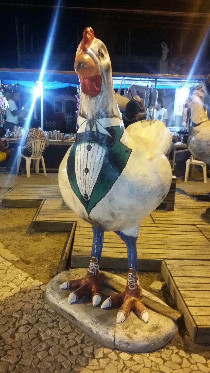 O que mais tem lá é estátua de galo e galinha!