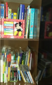 Quando fizemos aquela mudança de casa, providenciei uma bibliotequinha em duas prateleiras da cômoda do quarto dele e, ao contar os volumes, fiquei surpresa ao constatar que já havia 59 livros e 12 CDs no acervo. Muitos dos quais herdados dos primos e tinha alguns até que eram da minha própria infância! Luiz ficou felicíssimo com a biblioteca e é sempre um dos lugares do quarto que gosta de mostrar para as visitas.