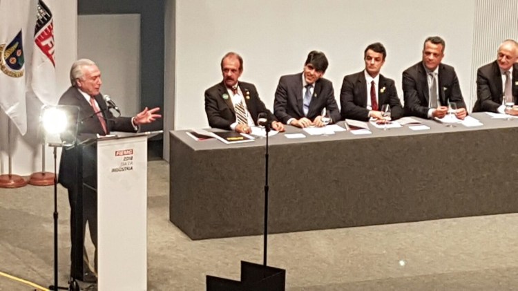 Antes dele, discursou na mesma solenidade de transmissão da presidência da principal entidade empresarial mineira (de Olavo Machado Júnior para Flávio Roscoe), o governador Fernando Pimentel, do PT, que teve o dissabor, primeiro, de assistir a um início de vaias, e em seguida, de ouvir Temer anunciar que o acordo com os grevistas previa a redução do ICMS sobre os combustíveis.
