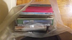 Aproveitei o embalo e pedi que ele escolhesse CDs para doar. Ele escolheu sete, eu que guardei dois deles porque pensei que poderia gostar algum dia.