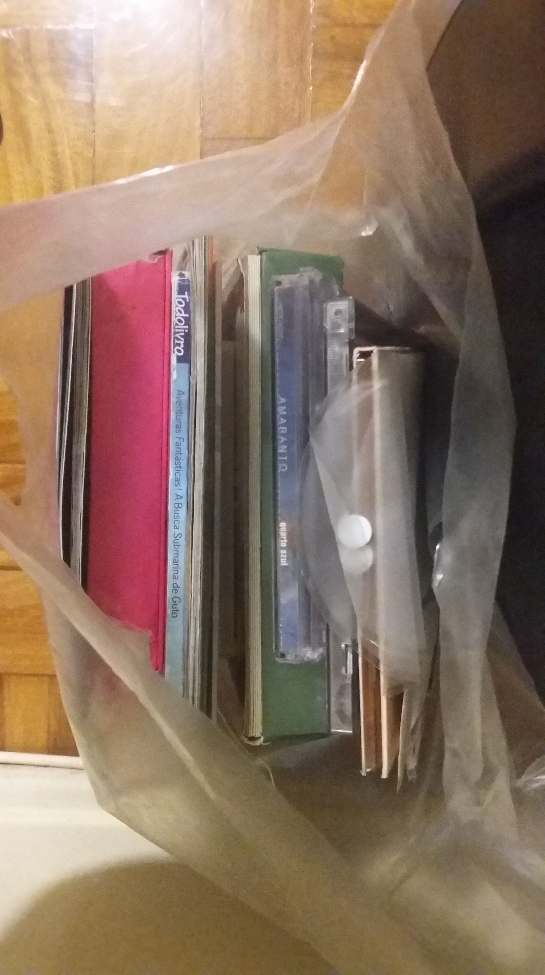 Por fim, a sacola de doação ficou com 11 livros e 5 CDs: