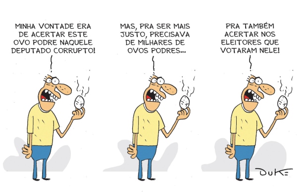 Com os políticos toleramos tudo o que não toleramos na nossa vida privada ou profissional. Você contrataria alguém para o cargo de direção de sua empresa se ele tivesse um grave problema de caráter ou se tivesse feito coisas ilegais? Ou no emprego anterior, nada tivesse feito a não ser enrolar todo mundo? Jamais, porque você sabe que isso é um problema, com certeza.