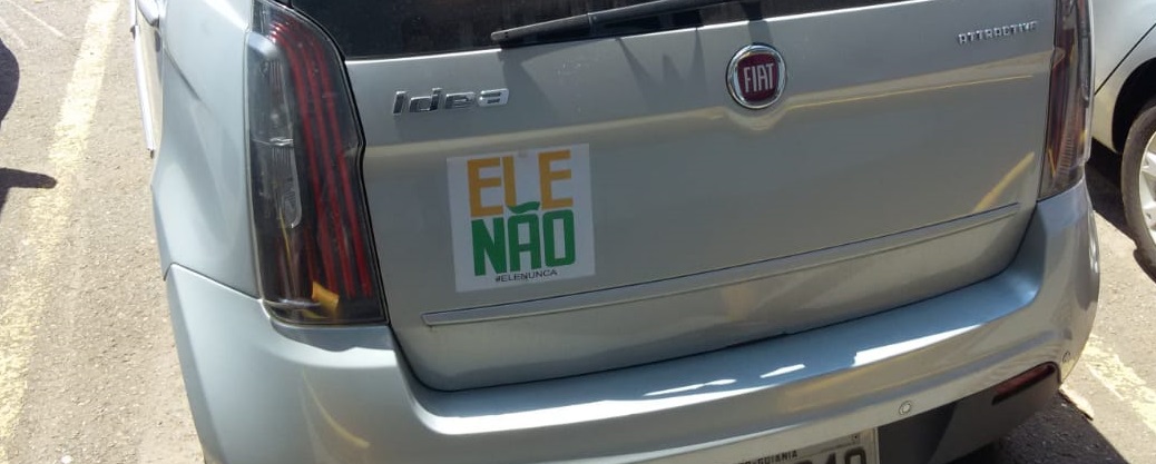 Vejam que incrível esta iniciativa que o Rafael Mendonça e sua esposa, de Goiânia, estão organizando: um adesivaço para fortalecer a resistência na capital do Goiás contra o candidato fascista destas eleições, que é o boçal Jair Bolsonaro.