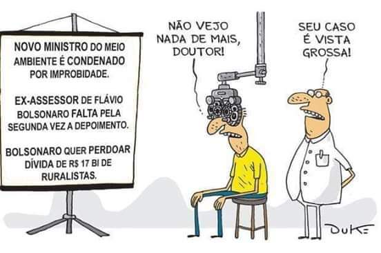 - 15/1 – Ministro do Meio Ambiente diz que vai acelerar o licenciamento ambiental. Mal sabia ele que foi graças a licenças dadas de forma apressada que ocorreria, exatos dez dias depois, a tragédia em Brumadinho, crime ambiental que deixou centenas de mortos/desaparecidos. Ah, se ele tivesse uma bola de cristal…