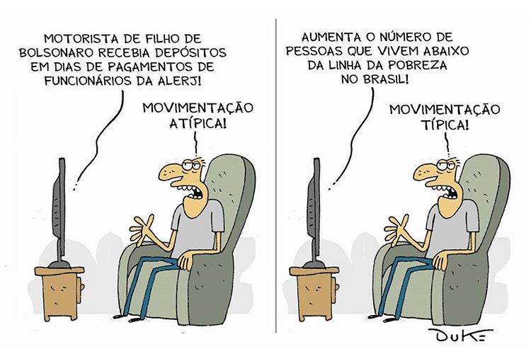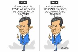 - 17/1 – É assim que a família Bolsonaro lida com suspeitas de corrupção? “Flávio Bolsonaro pede, e STF suspende investigação que envolve seu gabinete“. Ah, veja bem: ministro do STF afirma que pedido de Flávio Bolsonaro sobre motorista foi uma confissão de culpa. Ah, e o novo ministro Sergio Moro responde sobre corrupção, mas não fala sobre o caso envolvendo o filho do presidente da República. Vai vendo o nível da impunidade que vai rolar no novíssimo governo…