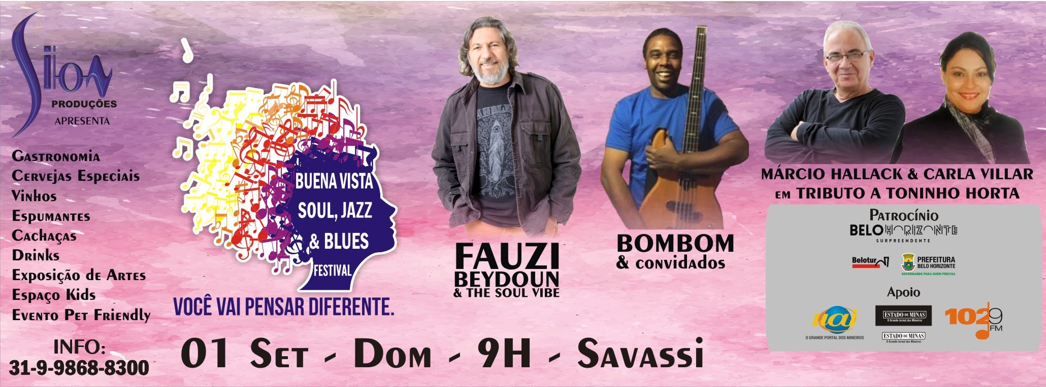 Neste domingo, 1 de setembro, das 9h às 18h, vai rolar o Buena Vista Soul, Jazz & Blues Festival, ali na praça da Savassi.