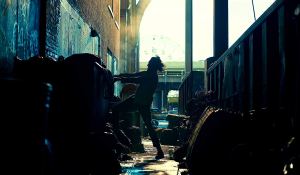 Arthur tenta fazer rir, mas só consegue que os outros riam dele. O primeiro processo é ativo e integrador, o segundo é passivo e desintegrador. Arthur, assim, é visto pela maioria dos outros que o cercam como “Fleck”, mancha pequena e sem importância. Ele é assimilado aos montes de sacos de lixo e aos vagões sujos de trens que habitam a tela. Somente um ator excepcional poderia traduzir essa ideia em algo vivo e significativo. É o caso de Joaquin Phoenix. Presente em quase todas as cenas do filme, ele é seu corpo e alma. Sua expressão corporal, facial e vocal é algo espantoso e emocionante. Os versos de Cazuza descrevem algo do que o filme busca aludir: “A esperança tá grudada na carne/ que diferença entre o amor e o escárnio/ cada carinho é o fio de uma navalha”. O ator se transfigura em personagem: diante de nós ele efetivamente é a carne e a navalha, a esperança e o escárnio.