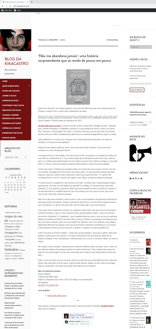 De cara, já é possível notar que o novo template traz uma home page mais leve, com menos texto e mais imagens. Mas sem prejudicar a palavra escrita, que é minha matéria-prima principal: o leitor que se interessar pelo resuminho poderá clicar para continuar a leitura. A navegabilidade me pareceu eficaz e simples.