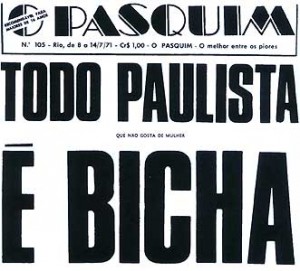 O jornal não morreu e os presos foram libertados na segunda semana de janeiro. Seis meses depois, novo escândalo. Em letras enormes, na capa, “O Pasqu10im” publicou: “Todo paulista é bicha”. Poucos perceberam que a frase completa era: “Todo paulista que não gosta de mulher é bicha”. Que não gosta de mulher, em letras minúsculas. Foi recorde de vendas do jornal em São Paulo, a Câmara Municipal reagiu e o censor do Pasquim foi chamado a Brasília para dar explicação.