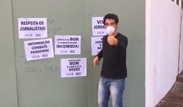 O Sindicato dos Jornalistas de Minas agiu rápido: Alessandra Mello e Kerison Lopes foram até o local e o cobriram com frases com os dizeres: “Respeita os jornalistas!”, “Viva os jornalistas”, “Informação combate pandemia”, “Sou jornalista e não me calo”, “Jornalista bom é jornalista vivo!” e “Jornalista bom é jornalista que incomoda”. VEJA O VÍDEO AQUI.
