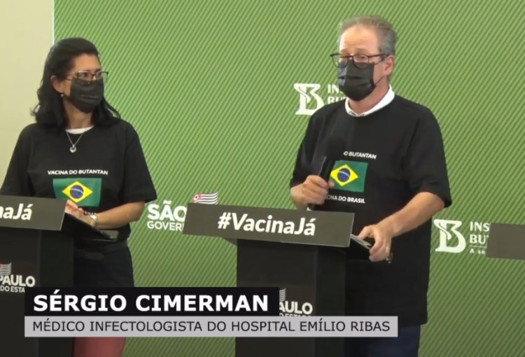 (…) É um orgulho pra mim fazer parte deste momento histórico. (…) Queria reforçar a rapidez com que a Anvisa, nosso órgão regulatório, com maestria e rigor técnico, comparado a outros países, como EUA, Reino Unido e Canadá, avaliou toda a documentação. Demos a resposta à população, e à imprensa que clamava por dados mais robustos e em outras coletivas questionava essa possível eficácia, aí está: a Anvisa, nosso órgão regulatório, dá aprovação para uso emergencial. Isso é muito importante. Uma vacina segura. Em torno de 3% de efeitos adversos de grau 1 ou grau 2, ou seja, ínfimos. Eficaz sim: 50,39%. Vou me pautar na fala do doutor Gustavo, da Anvisa: ‘Que não tem efeito prático algum a questão de mais 50% ou menos 50%’. Ele foi muito feliz, na minha avaliação, quando ele coloca isso. Os negacionistas, os antivacinas têm que aprender com a ciência. A ciência está comprovando a importância.