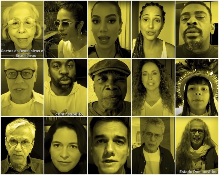 Fiquei emocionada ao ver o vídeo abaixo. São inúmeras personalidades, dentre os mais importantes do Brasil, como Chico Buarque, Milton Nascimento, Fernanda Montenegro, Maria Bethânia e Caetano Veloso, além de nomes que conversam melhor com a geração mais jovem, como Anitta, declamando a Carta em Defesa do Estado Democrático de Direito, sobre a qual escrevi aqui no dia 28 de julho.