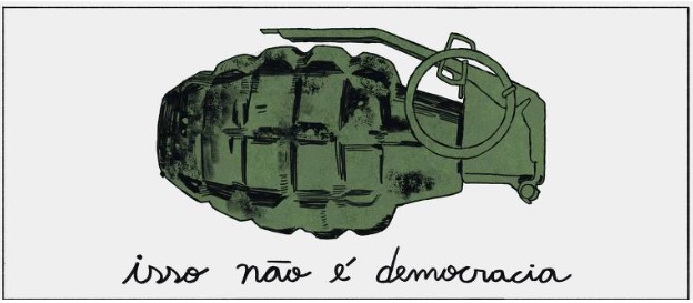 Charge de João Montanaro mostra uma granada e a frase: "Isso não é uma democracia". Em referência ao dia em que Roberto Jefferson, aliado de Bolsonaro, atirou uma granada contra policiais federais que foram cumprir um mandado judicial contra ele.