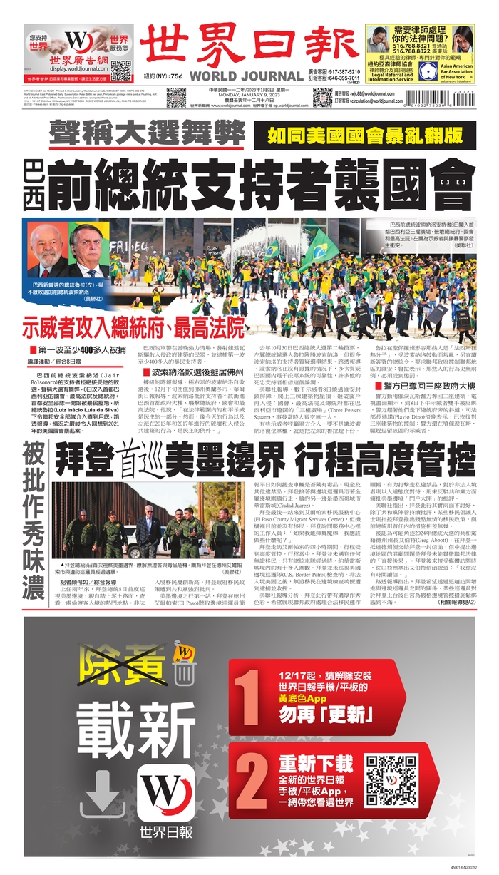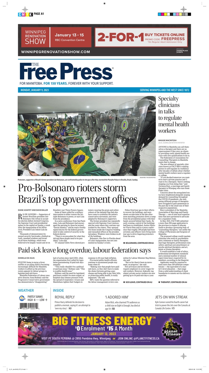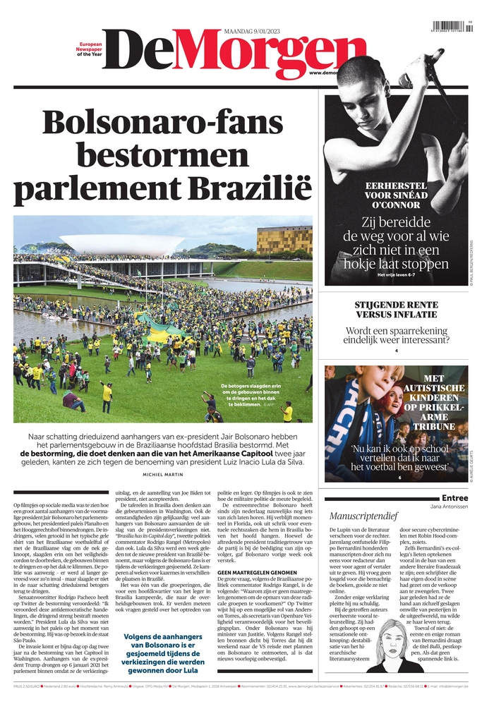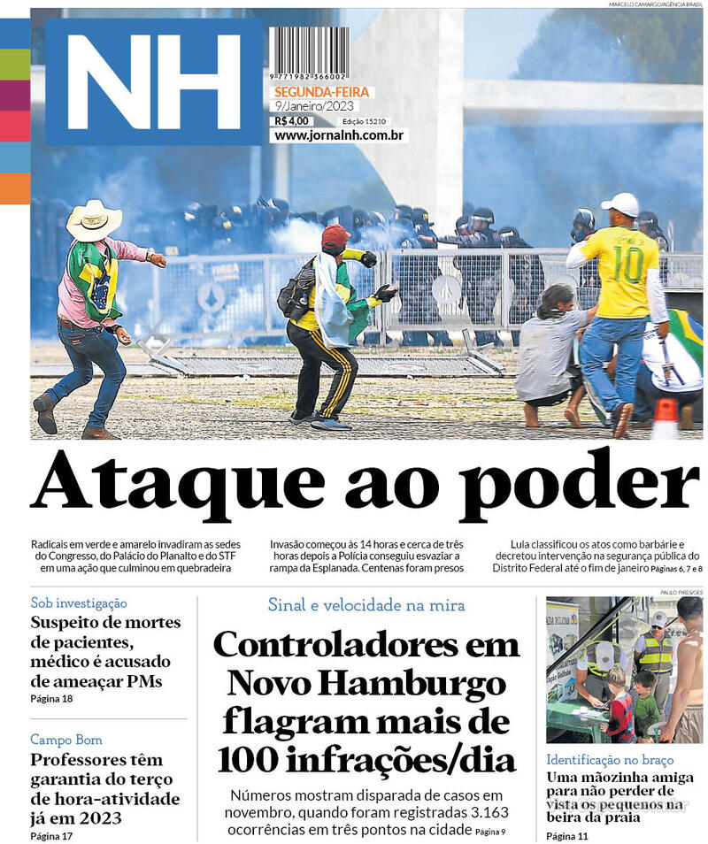 Veja, a seguir, as primeiras páginas de jornais desta segunda-feira, 9 de janeiro de 2023, sobre o ocorrido na véspera. Clique sobre qualquer capa para ver todas em tamanho maior: