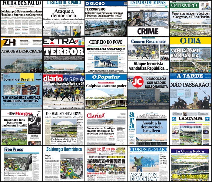 - Bolsonaristas criminosos em Brasília: capas de jornais do Brasil e do mundo
