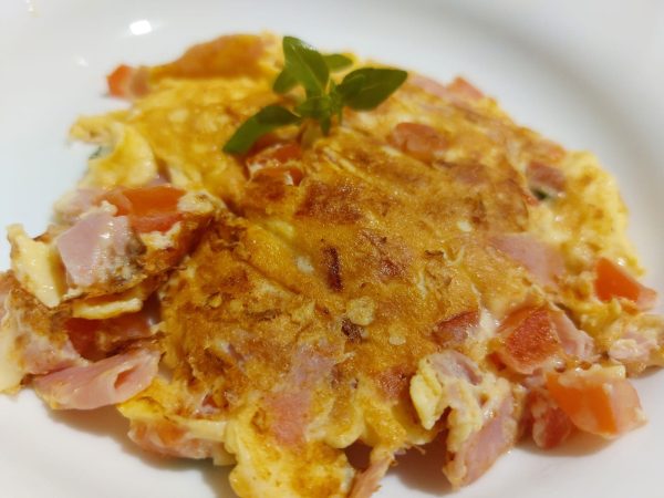 • Luiz deu nota 9 para omeletes de presunto e de frango, nota 8 para a de bacon e não experimentou a de tomate (o que era nosso único combinado no Chef em Casa, então talvez eu não faça mais…)