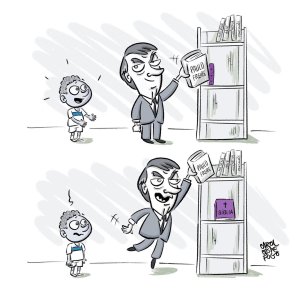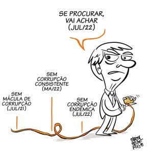 Recentemente, fui à excelente exposição sobre era Bolsonaro em charges, “Pra Não Esquecer!“, em que as obras da Carol foram destacadas ao lado de outros craques do cartum, como Duke, Laerte, Aroeira, Benett, André Dahmer, Gilmar, Jean Galvão, Nani, Nando Motta, Quinho e outros (veja uma delas abaixo).