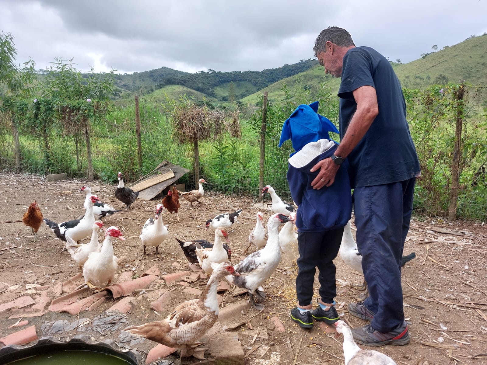 A alegria genuína do Luiz ao alimentar os patos e gansos, ao ver as tilápias comendo a taioba no tanque e, principalmente, ao recolher os ovos das galinhas (75 ovos só no sábado!). A descoberta da tinta natural de urucum, que deixou os dedinhos manchados, da carroça e do carro-de-boi.