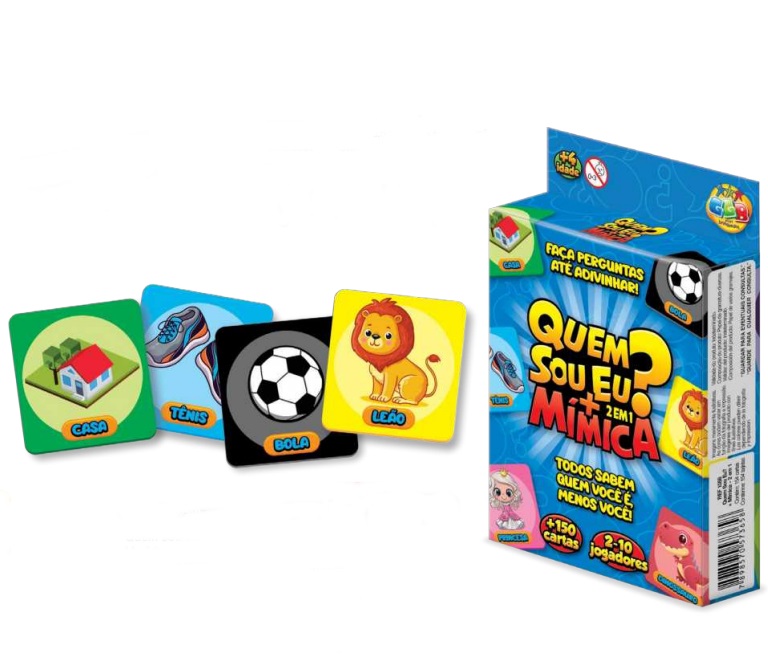 1) Quem Sou Eu? + Mímica (2 jogos legais em 1) – Quantidade de jogadores: 2 a 10. Idade: a partir de 6 anos. Preço na Amazon: R$ 12,90*.