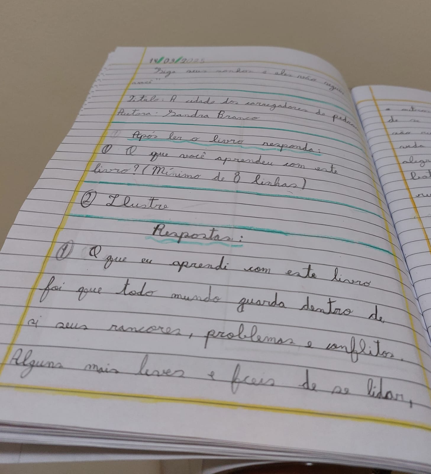 “O que eu aprendi com este livro foi que todo mundo guarda dentro de si seus rancores, problemas e conflitos. Alguns mais leves e fáceis de se lidar, e outros pesados e mais difíceis de se resolver, só que todos eles são ruins de se guardar. E, para nossa vida ser mais leve, mais livre, mais alegre e mais interessante, temos que botar todos os nossos sentimentos ruins para fora.”