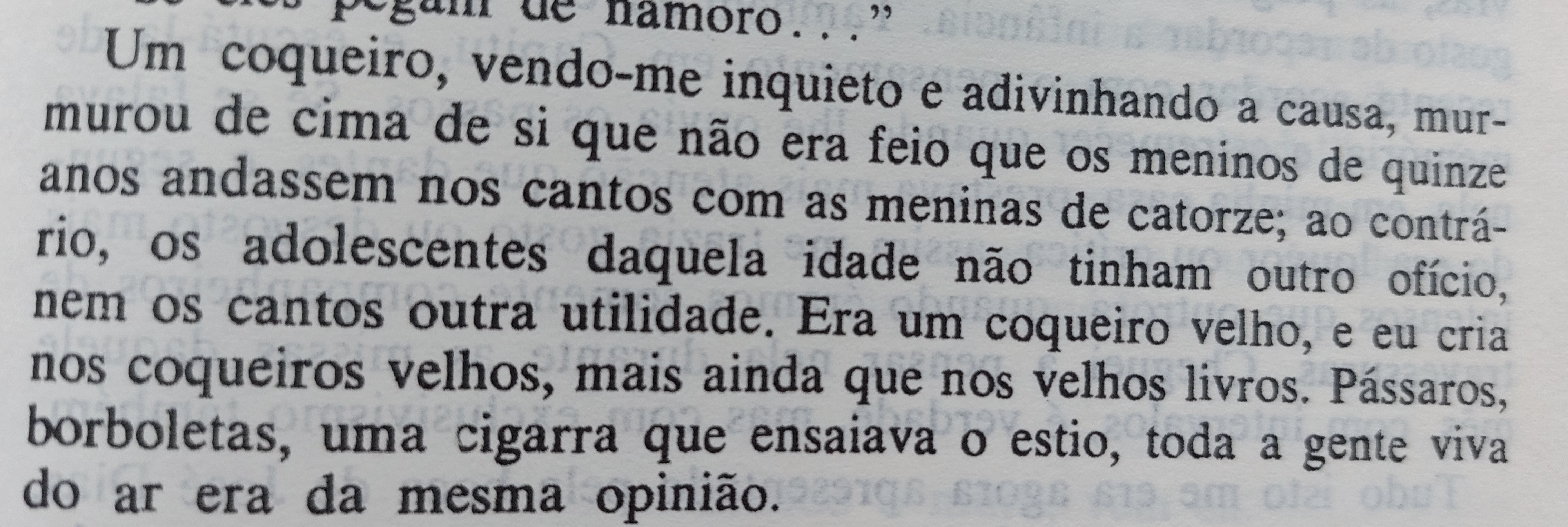 Por exemplo, passei a vida inteira achando que o livro girava em torno de Bentinho tendo dúvida se havia sido traído ou não por Capitu. Achando que todas as 174 páginas do livro eram sobre isso.
