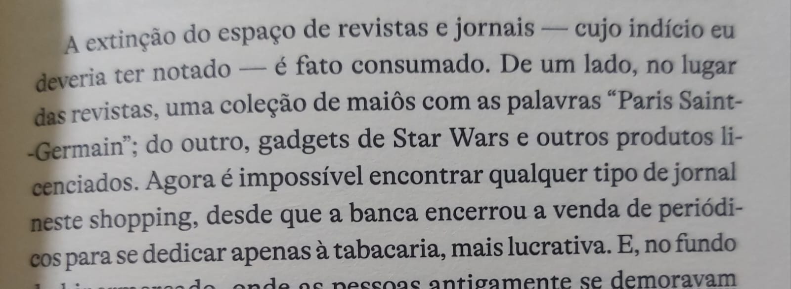 É curioso como tudo o que ela descreve em um supermercado da França de mais de dez anos atrás é extremamente parecido com o que vivemos em nossos supermercados brasileiros de 2025 (talvez com a diferença de que os caixas de autoatendimento só estejam chegando aqui agora, e lá já eram populares). Talvez ela tenha conseguido a proeza de escrever um livro-síntese do século 21 no mundo ocidental.