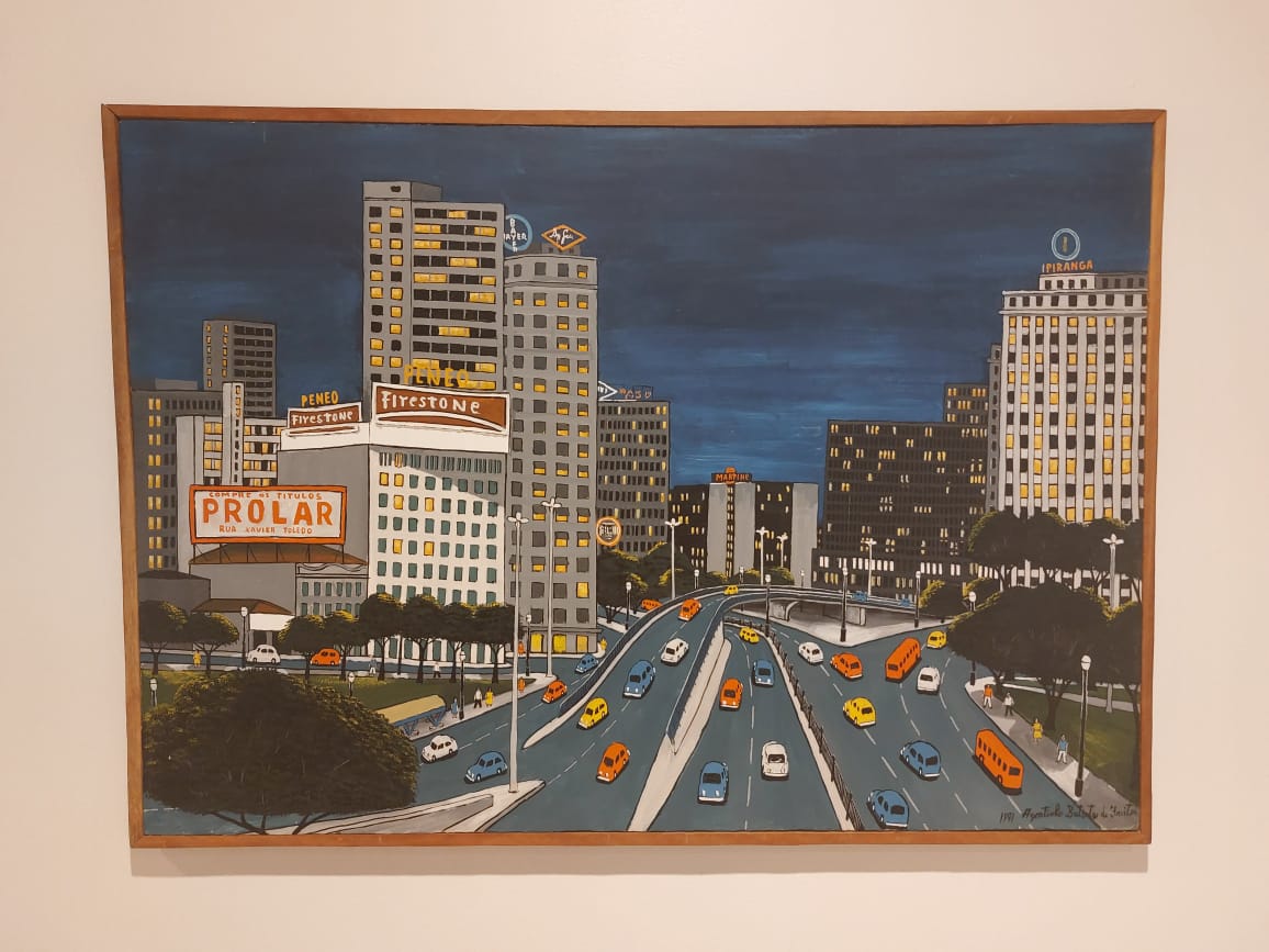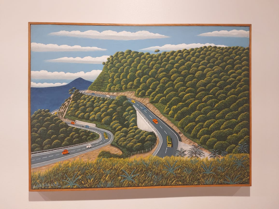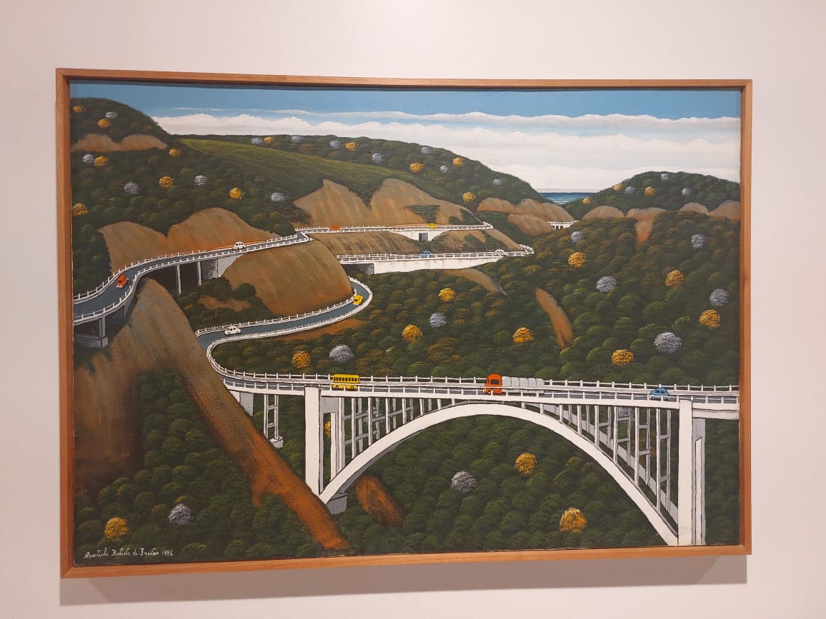 Obra sem título, mas uma das várias do artista paulista Agostinho Batista de Freitas que retratam a rodovia dos Imigrantes. Esta é de 1988: