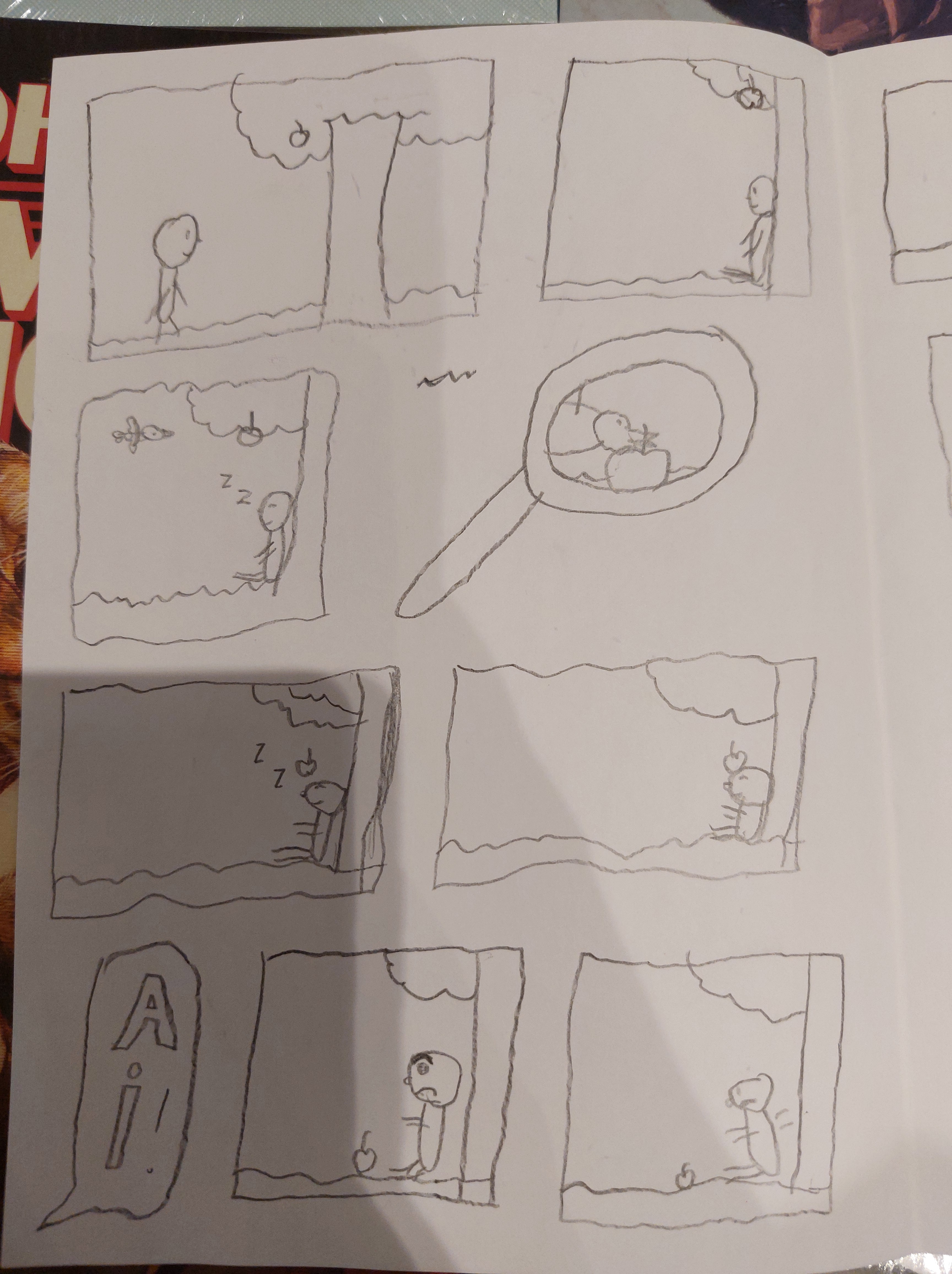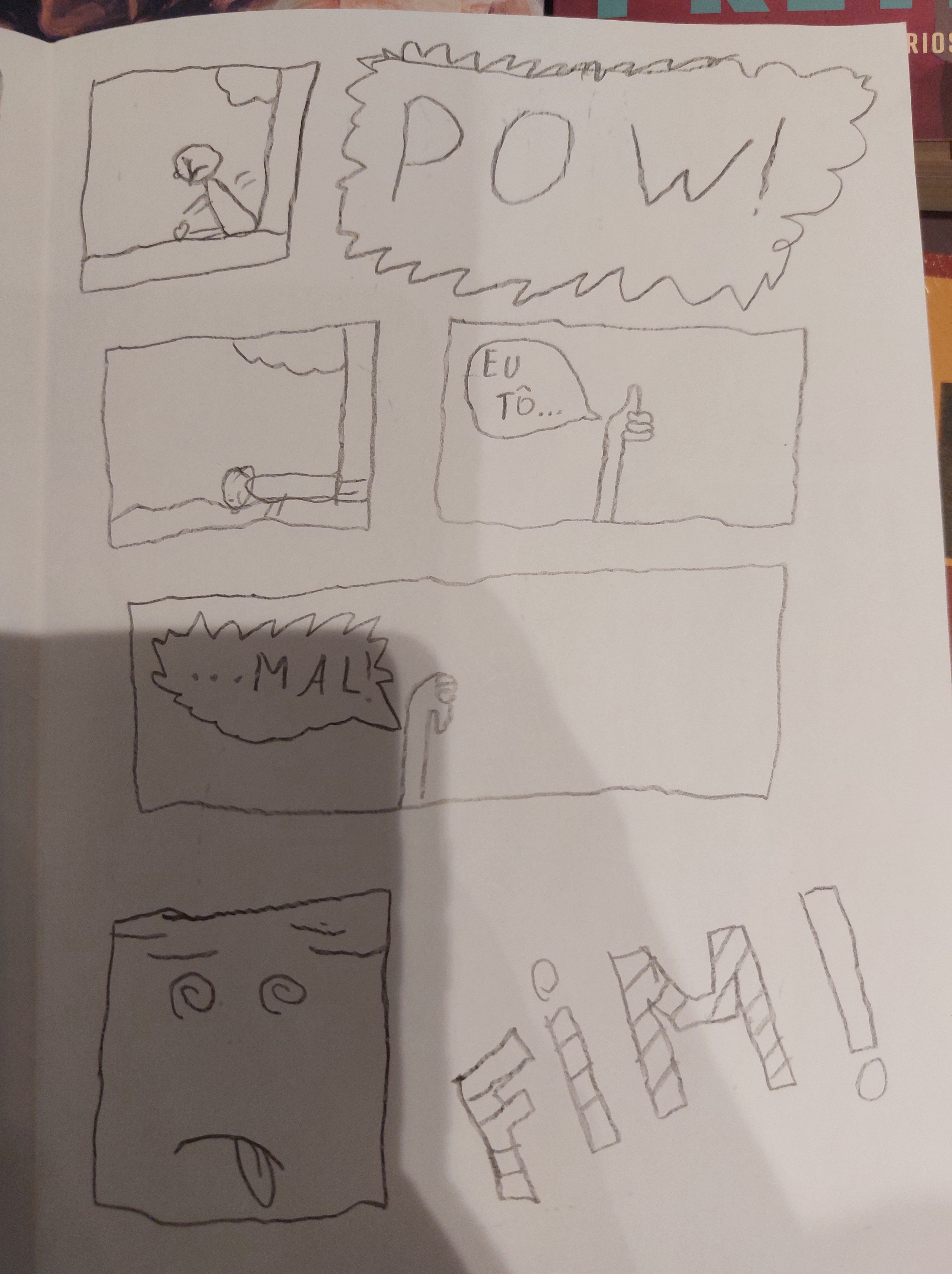 Embora sempre tenha gostado de ler histórias em quadrinhos, principalmente as do Ziraldo e do Homem-Cão, ele nunca tinha experimentado fazer suas artes nesse formato.