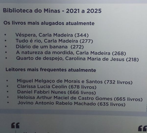 Há exatos quatro anos, no dia 14 de dezembro de 2021, em plena pandemia, eu ganhava uma biblioteca pra chamar de minha. Na verdade, era Belo Horizonte que ganhava, com a inauguração da Biblioteca do Centro Cultural Unimed-BH Minas, 100% gratuita e aberta ao público.