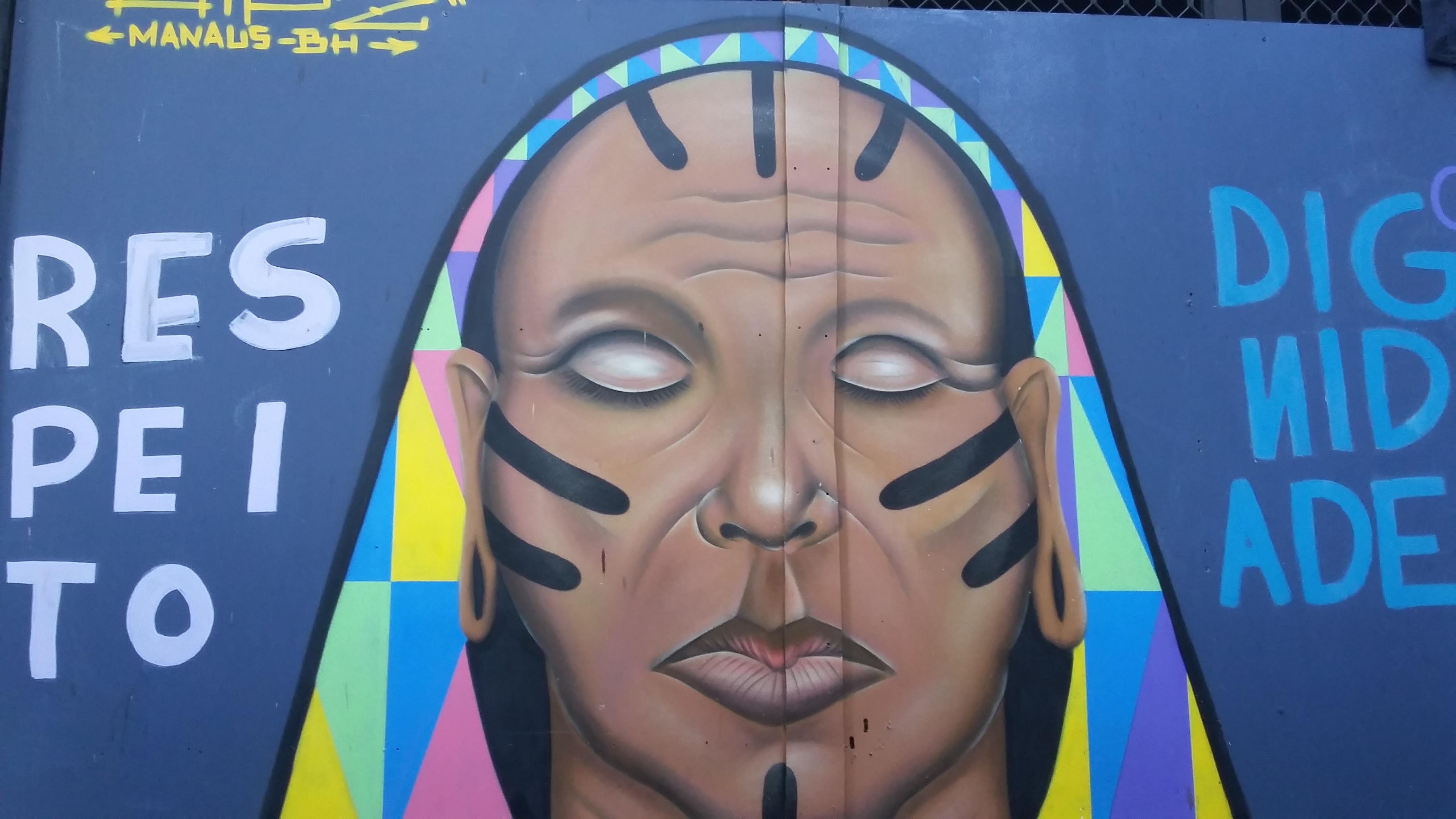 Grafite na rua Espírito Santo com av. Amazonas, no centro de BH. Foto de 18.7.2018, por CMC.
