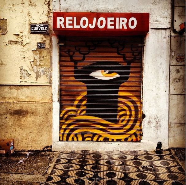 Grafite (provavelmente de Tiago Alvim ou Melek) na rua Curvelo, no Floresta. Fotografado por Guilherme Ávila e publicado originalmente em janeiro/2014 em seu Instagram: http://instagram.com/guilherme_avila