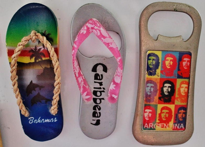 Chinelinhos e abridores de garrafa variados. Foto: CMC, em 27/3/2015